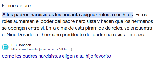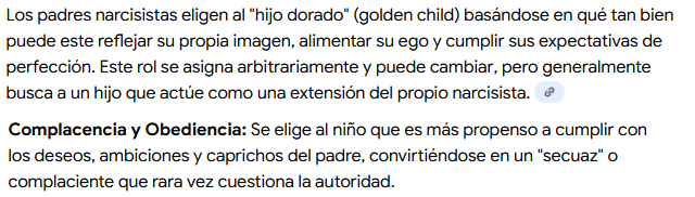 Digamos que aunque tú quieras no acomplejarte o no prestarle importancia a "la validación" de los dem´ás o pelear por la validación de tu familia, digamos que ellos ponen como un poder factico por ser el hijo dorado, que es respetarte como ser humano y tratarte como su igual. Se supone que en teoria eso deberia de ser un derecho para todos. Pero ellos eso lo usan para "privilegiar" solo al hijo que consideran "el mejor"