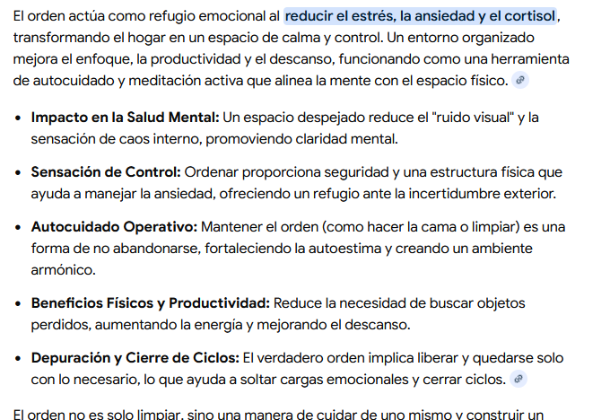 A mi lo que me paso ahora es que donde vivo me gusta tener espacios ordenados sin cosas, porque a la hora de pasar el trapeador o barrer lo que más cuesta trabajo es estar moviendo las cosas, y como tengo esto de que procrastino lo que es dificil, o lo que percibo como desafiante.