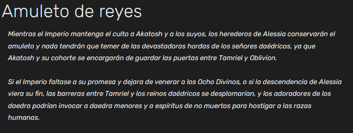 Como cuando lees un libro random en Skyrim y te das cuenta que eres el malo de la historia y no lo sabias. xD En teoria eres un cuchilla que mata dragones, y los dragones salvaron a la humanidad, y si ayudas a negar a Talos rompes el pacto con akatosh y traes la corrupción a Skyrim. Ahora entiendo porque somos Adalid de los daedras.