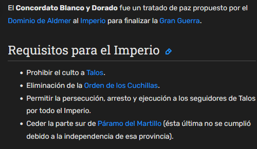 Siempre se ha pensado que el imperio es el "bueno" pero los capas de la tormenta con esta información serian los "buenos" Son los que defienden a talos. xD Ese juego es bien raro, al principio crei que solo se trataba de la guerra civil, luego estudias el Lore de la guerra Talmor y ahora el reinado de Alessia xd y siempre te cambia la perspectiva de quien es el "bueno" Si no lees los libros te vas con la idea de que eres el "bueno" xd