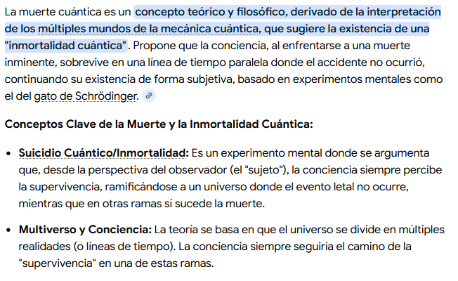 Ya saben mi historia es que intente suicidarme y a partir de ahi empece como mi camino filosofico espiritual esoterico, y aveces siento que no puedo morir :( Es esta creencia de la muerte cuantica, donde no eres capaz de experimentar una muerte porque siempre te trasladaras a un plano existencial donde "fallaste" y sobreviviste. :( No será que la vida es una prisión y por eso no te puedes suicidar? XD