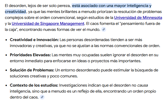 No se, a mi me dan ganas de arrancarme la piel o como ansiedad extrema el estar en ambientes desordenados, y cuando se me impone ser así como que me "apaga" o me hace no tener ganas de hacer nada, como que me estresa y me fatiga emocionalmente. Quizás sea porque no tengo el IQ tan elevado. xd