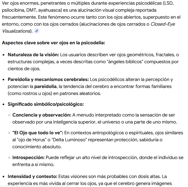 Cuando haces esto de la muerte mistica, o psiconautica es todo normal ver ojos enormes y fractales y se presume que esa es la verdadera realidad, y lo que vivimos es una "ilusion" pero desde el enfoque o la postura cientifica, estas drogado y por eso alusinas. XD